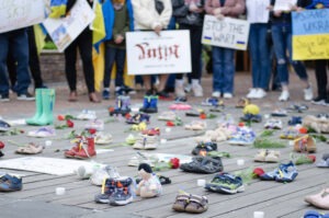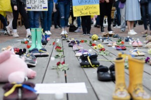 128 пар дитячого взуття: українці Каліфорнії влаштували перформанс для привернення уваги до війни