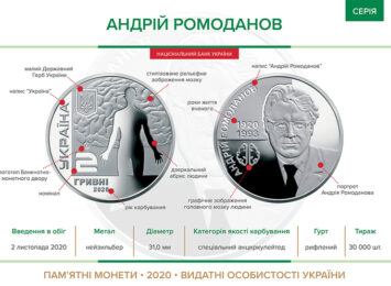 Пам'ятна монета «Андрій Ромоданов» вводиться в обіг з 2 листопада 2020 року. Про це повідомляє пресслужба Нацбанку ...