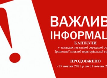 У закладах загальної середньої освіти Ірпінської міської територіальної громади продовжили канікули з 25.10.2021 р. по ...