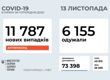 11 787 нових випадків коронавірусної хвороби COVID-19 зафіксовано в Україні станом на 13 листопада 2020 року. ...