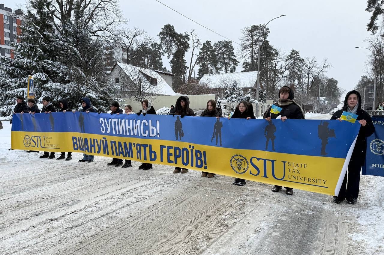 Ірпінь відзначив День єднання пам’ятним заходом біля зруйнованого корпусу Державного податкового університету
