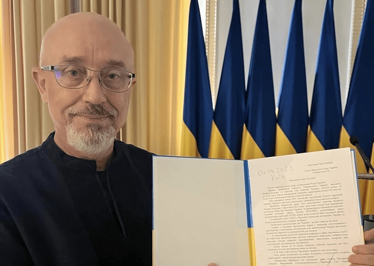 Сьогодні, 4 вересня 2023 року, міністр оборони України Олексій Резніков подав до Верховної Ради України та президенту України Володимиру Зеленському заяву про свою відставку. Про це повідомив народний депутат Ярослав Железняк.