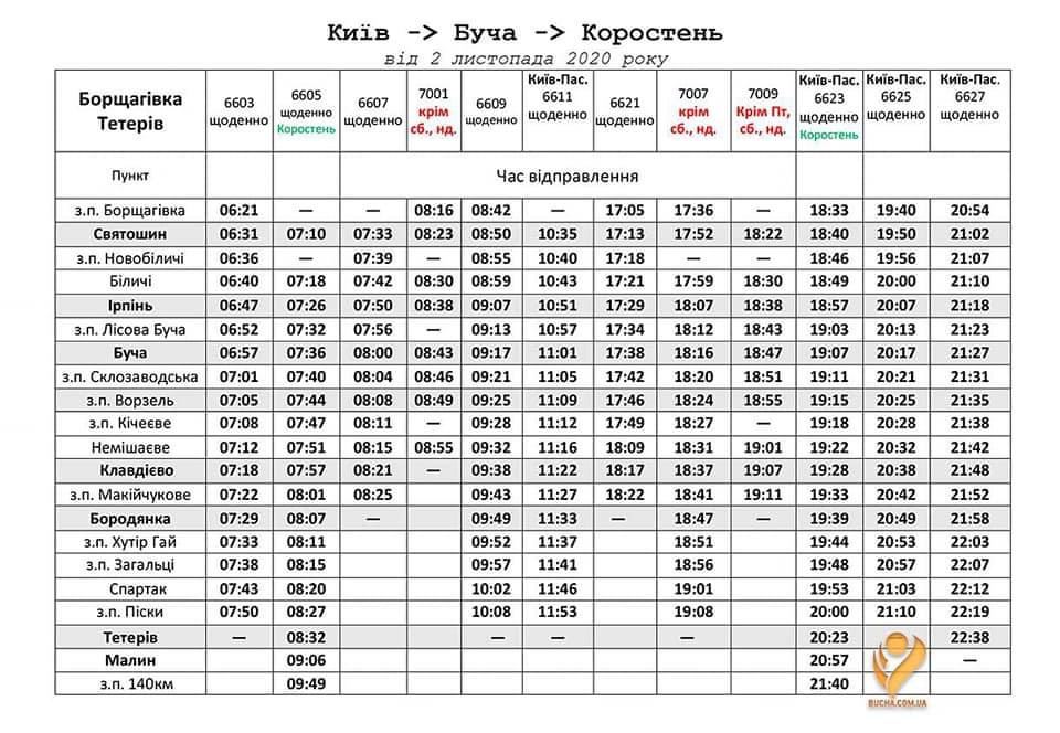 Новий розклад електричок Київ-Коростень