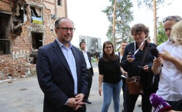 Міністри закордонних справ Австрії та Чехії Александр Шалленберг і Ян Ліпавський під час робочого візиту до України відвідали Ірпінь у ...
