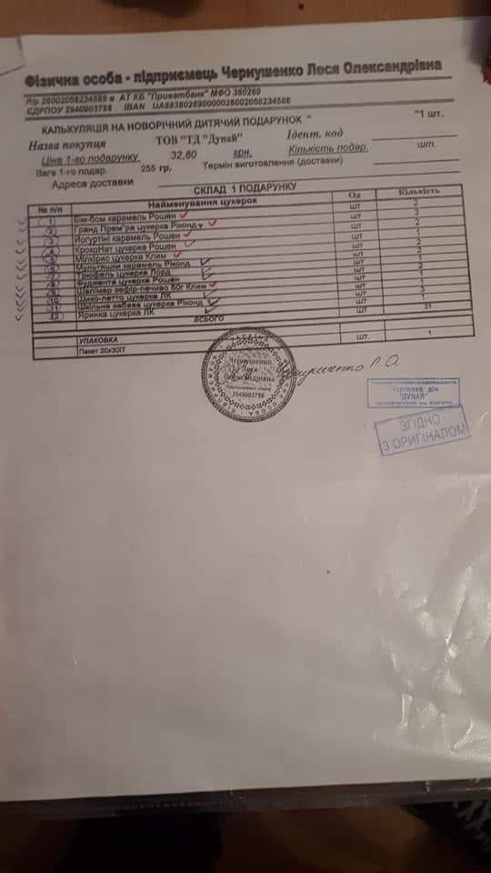 Місцеві мешканці самотужки дістали калькуляцію закуплених подарунків та перевіряють якість даних солодощів. Процес вирішення питань з новорічними подарунками триває.