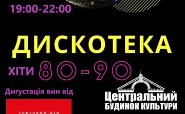 Центральний  будинок культури  в Ірпені  запрошує всіх охочих  на  дискотеку  90-х. Захід відбудеться  з 19:00 до  22:00 за адресою вул. ...