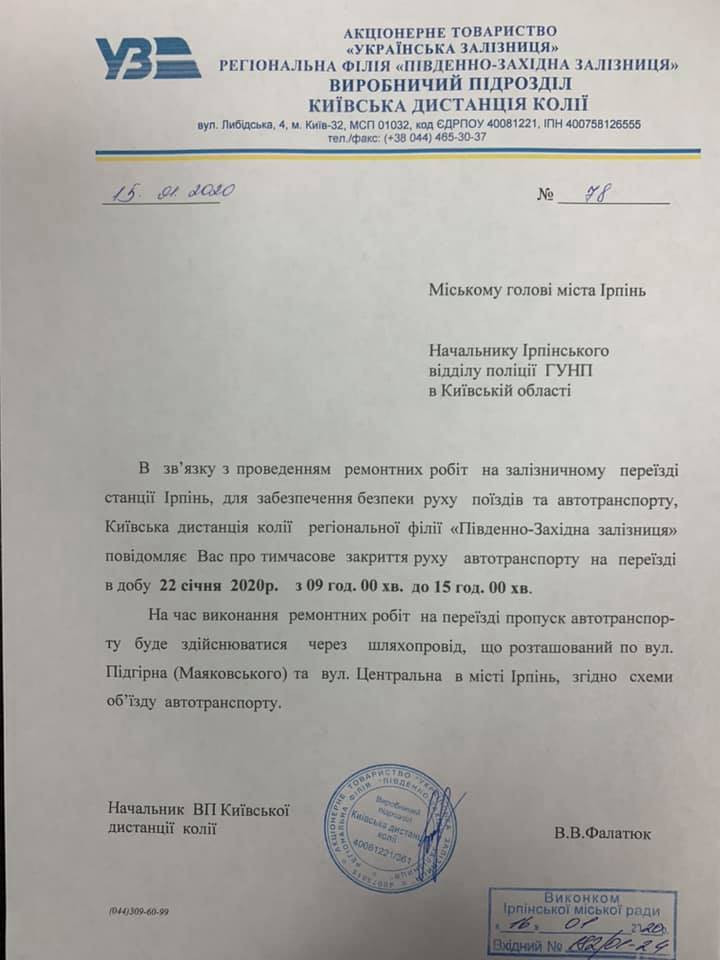 У зв’язку з проведенням ремонтних робіт 22 січня з 9:00 до 15:00 буде закритий залізничний переїзд. Об’їзд можна буде здійснити через вул. Підгірну та вул. Центральну.