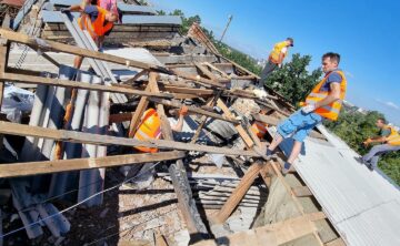 Волонтери «Добробату» почали тимчасово накривати дах будинку Миру 1а