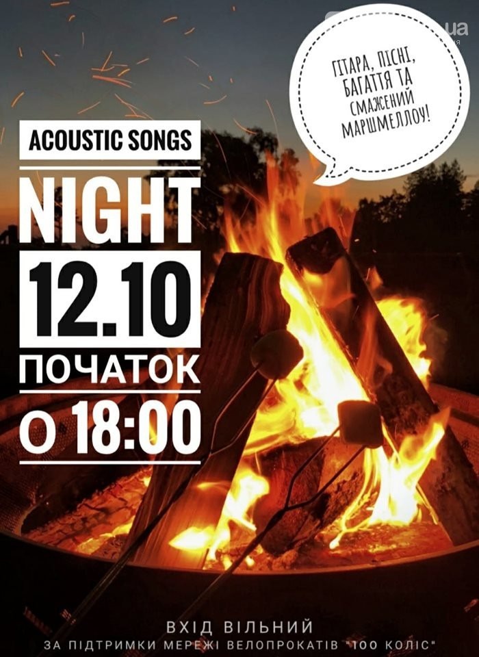 12 жовтня у Центральному парку проведуть акустичний вечір біля багаття. Ірпінцям пропонують пограти на гітарі, поспівати під акустичну музику та посмажити маршмелоу.