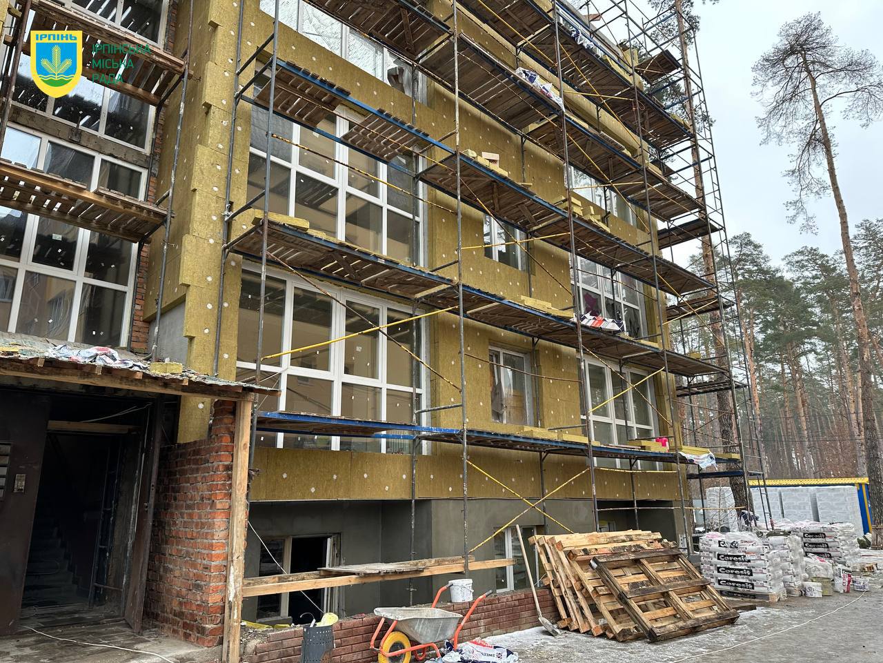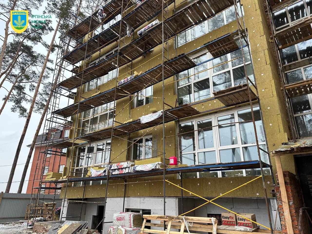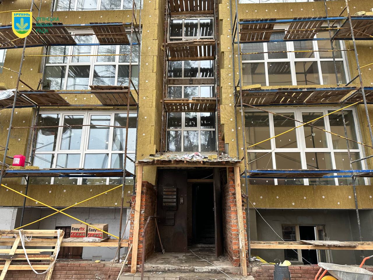 В Ірпені триває відбудова багатоповерхівки за адресою: вулиця Гостомельське шосе, 22, яка постраждала внаслідок збройної агресії рф проти України