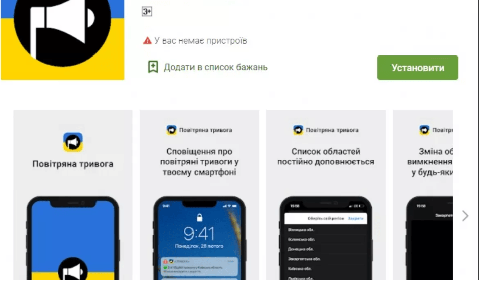 Українці можуть завантажити додаток «повітряна тривога», за допомогою якого можна дізнатися про небезпеку у конкретному регіоні. Наразі в застосунку доступна інформація із 12 областей.