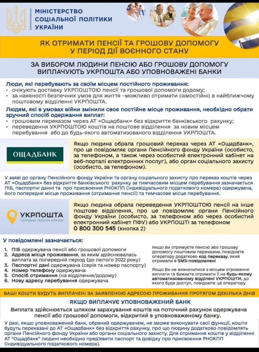 Для тих, хто залишається у місцях постійного проживання, як і до війни, пенсію будуть виплачувати у форматі доставки додому потужностями «Укрпошти». Якщо умови в регіоні є безпечними для життя – люди можуть отримати пенсію самостійно, в найближчому відділенні «Укрпошти».