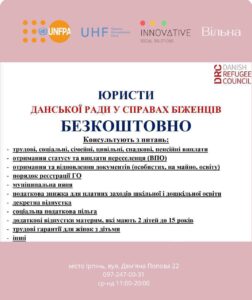 Жіночий простір «Вільна» в партнерстві із Представництвом Датської Ради у справах біженців в Україні організовує юридичну консультацію для жителів Ірпінської громади та ВПО