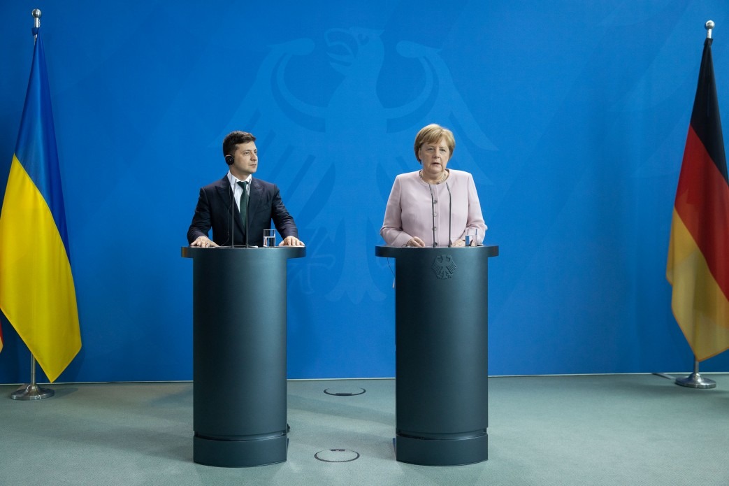 Зі свого боку Федеральний канцлер Німеччини підкреслила, що підтримує Україну. Під час зустрічі з Володимиром Зеленським було обговорено Мінський процес та санкції для Росії. Ангела Меркель наголосила, що санкції щодо Росії будуть послаблені лише після прогресу у виконанні Мінських угод.