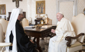 Блаженніший Святослав подарував Папі Римському фрагмент російської міни, яка знищила фасад храму в Ірпені