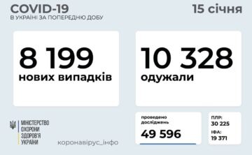 ​​8 199 нових випадків коронавірусної хвороби COVID-19 зафіксовано в Україні станом на 15 січня 2021 року. Зокрема, захворіли 236 дітей та 315 ...